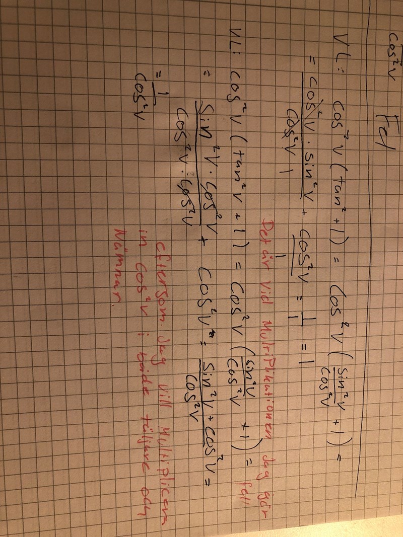 Bellis003 skrev:kom på nu att jag kanske ska tänka att cos^2v/1 är vad jag har utanför parantesen