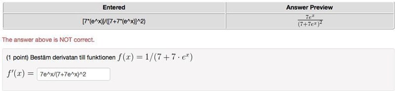 Men enligt hemsidan så är denna felaktig och jag kan inte se varför, har även kontrollerat svaret via en app Photomath som också får samma svar som jag har fått.