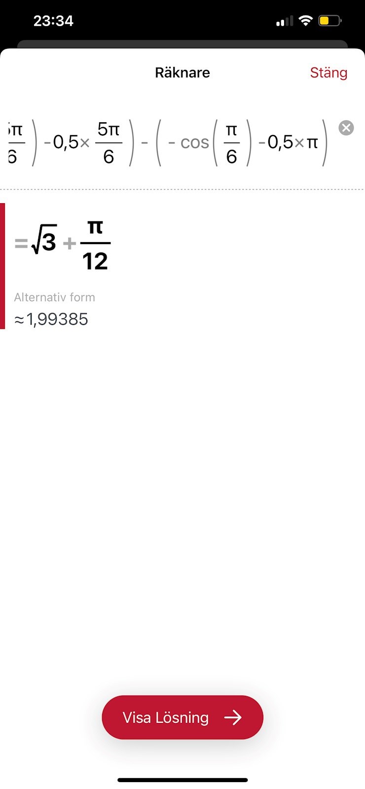 Jag hade råkat ta gånger pi men det ska vara pi/6