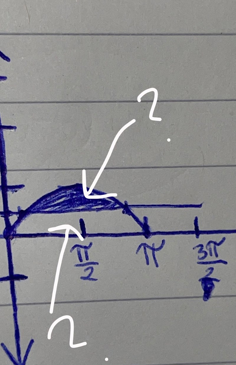 Men du har inte beräknat arean av det vita området (om du med det menar det som ligger mellan x-axeln, linjen y = 0,5 och grafen till y = sin(x))