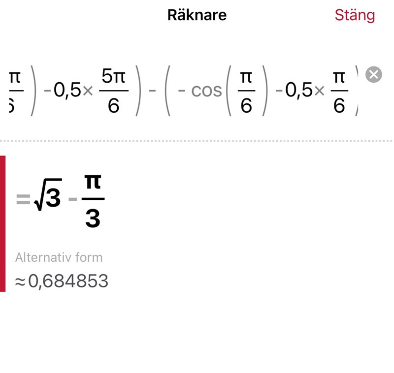 Varför får jag istället svaret (pi/3)-sqrt(3)?