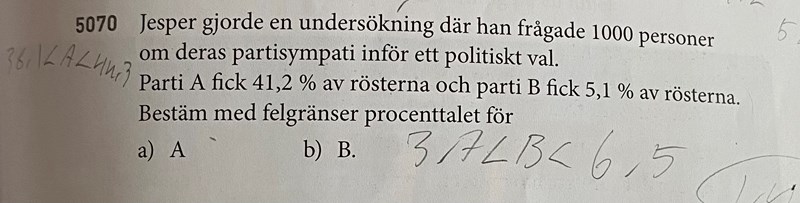 p är inte antalet personer, utan andelen i procentform. p borde därför i detta fall vara 41,2. :)