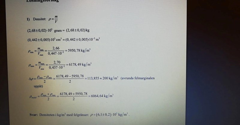 I facit så avrundar de felmarginalen från 113,855 kg/m^3 till 200 kg/m^3, förstår inte riktigt hur de kan avrunda det så mycket och varför man avrundar det uppåt?