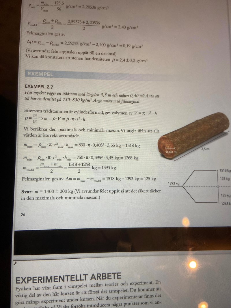 Sedan exempel 2.7 här förstår jag inte ens varför man väljer att avrunda felmarginaler till 200 kg. Hur fan gjorde dem det?  Jag kan förstå avrundningen till 1400 det minsta antalet värdesiffror var 2 så därför avrundar man till 1400. Men vad är logiken med att avrunda till 200.