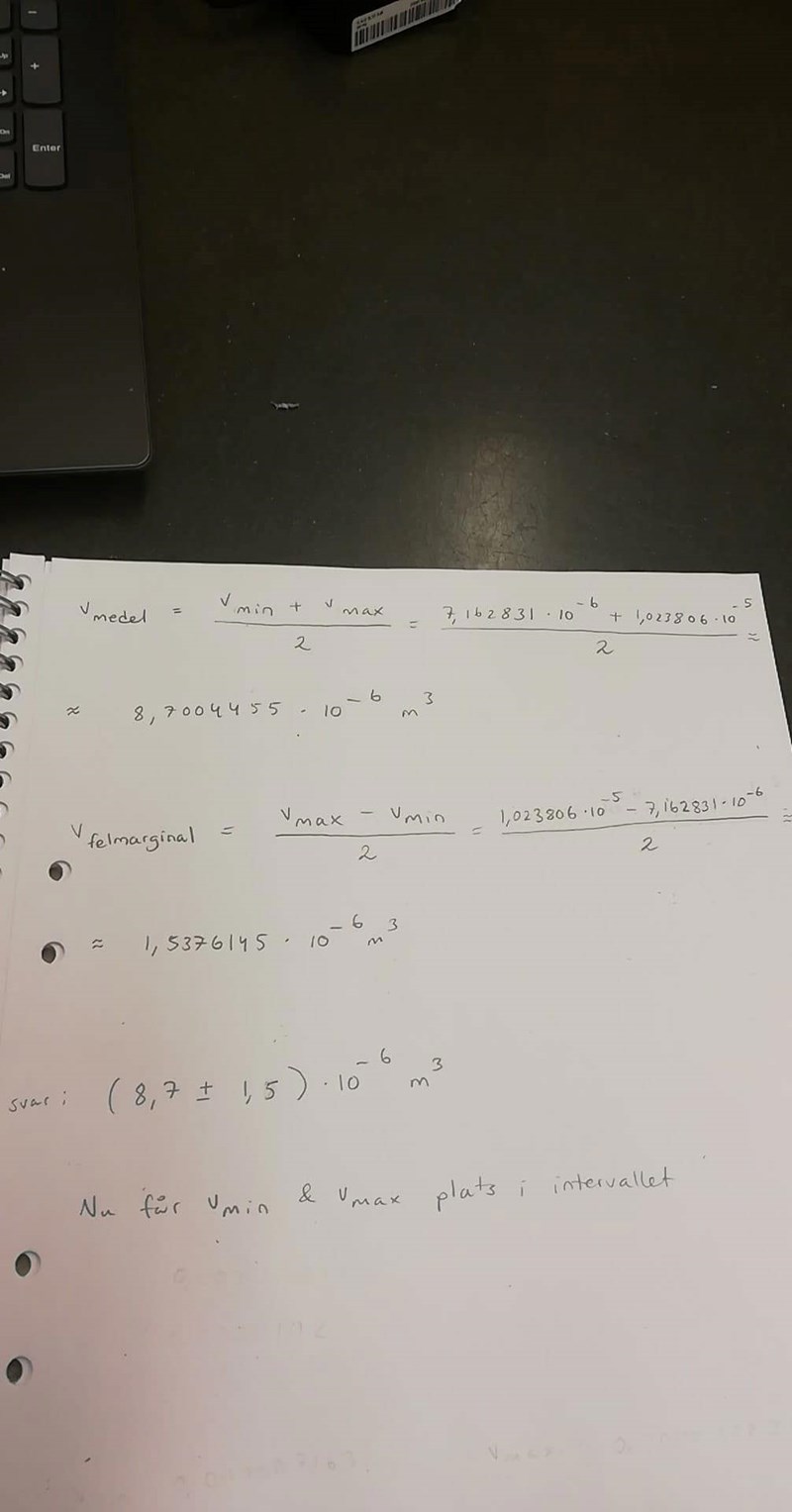 Laguna skrev:Du har 1,5 på ett ställe där det ska vara 1,15. Jämför min- och max-uträkningarna.