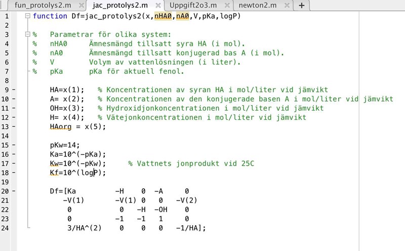 Det känns som att detta kanske är mer av ett kemi-problem då. Provat att ändra approximationen åt olika håll och öka antalet iterationer men får ändå samma felmeddelande samt att "det krävs mer än kmax=... för att bestämma nollstället.