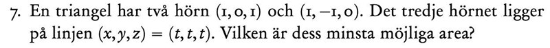 Dualitetsförhållandet skrev:Micimacko skrev:Antagligen sifferfel, jag började från din uppställda vektorprodukt och fick rätt. Testa igen.