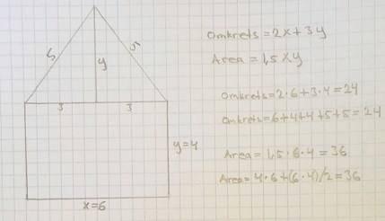 Jag har läst ditt inlägg ConnyN. Du väljer först x = 6 och y = 4, beräknar omkretsen O = 24, och arean A = 36 och sedan bygger du en 5-hörning som har dessa omkretser och areor. Min invändning är att detta raderar betydelsen av uttrycken 2x + 3y och 1.5xy och gör om problemet till