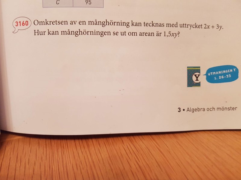 Vad är den ursprungliga frågan? "Hur kan månghörningen se ut om arean är 1,5xy" Den frågan har jag med Lagunas hjälp svarat på med bevis om du orkar läsa hela mitt inlägg. Det bör utan vidare vara en godkänd lösning i åk 8.