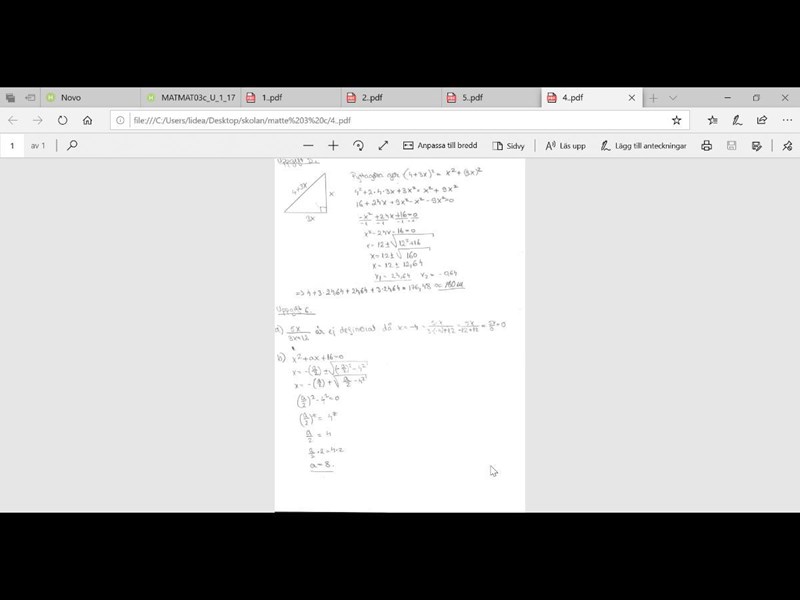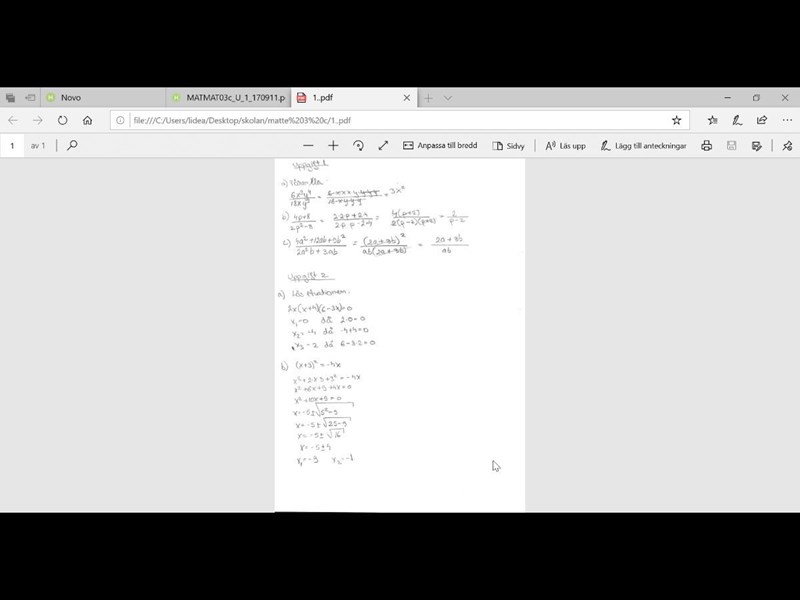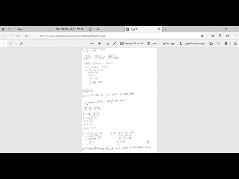 Här är lite av uppgifterna som jag har räknat. Jag har inte laddat upp alla eftersom det skulle bli ett för lång tråd . Jag har inte svarat rätt på alla men en del hade jag. Som jag förstår så är de uppgifterna i svart på E nivå, blå på C nivå och röd på A nivå. Jag har svarat rätt på en del av dem blåa men ändå fick E.