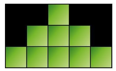 Figuren består av nio likadana kvadrater. Omkretsen av figuren är 128 cm. Beräkna figurens area.