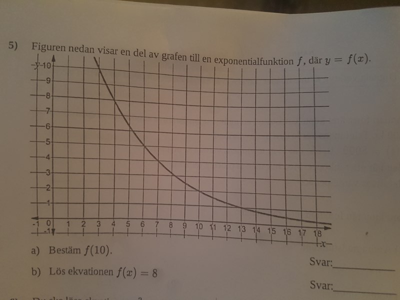 Figuren nedan visar en del av grafen till en exponentialfunktion f, där y=f (x)