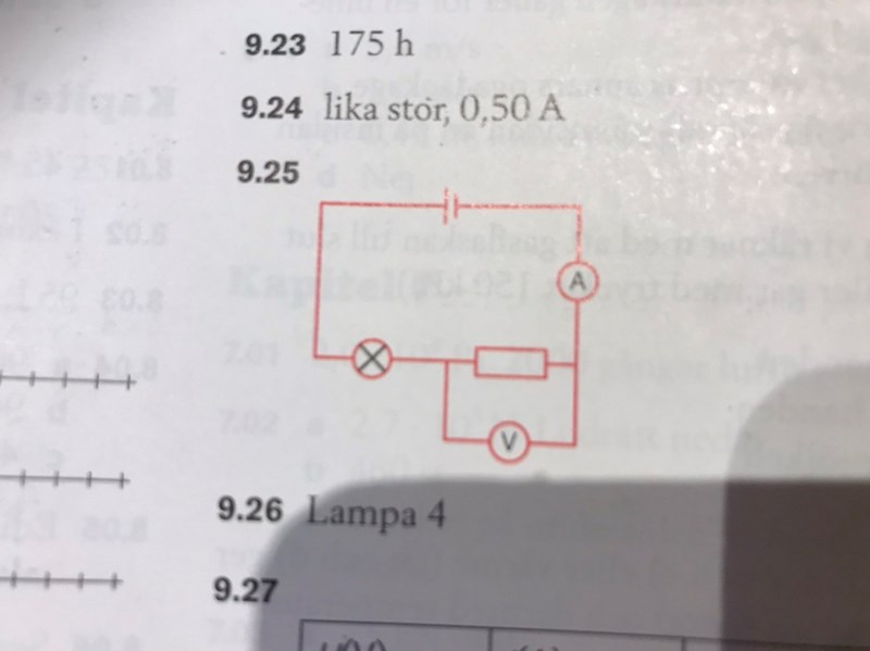 Sen tänkte jag att voltmetern alltid ska vara kopplad pararellt med lampan. Så då ritade jag den pararellt med lampan.