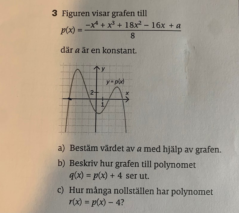 Figuren visar grafen till x^4+x^3+18x^2-16x+a