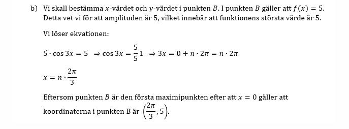 nu förstår jag a tack, löste ut att b Y kordinat är 5 pågrund av amplituden med hur får jag ut x?