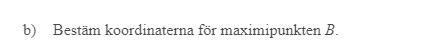 Figuren visar kurvan där ett nollställe A och en maximipunkt B är markerade. Matte4.