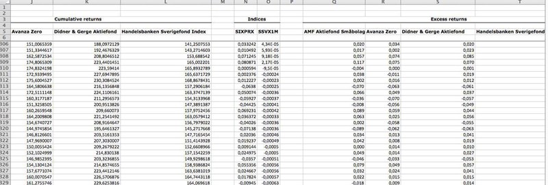 .. för att sedan en regression för att hitta alfa, beta, RMSE, MSE alpha/MSE, lalala.