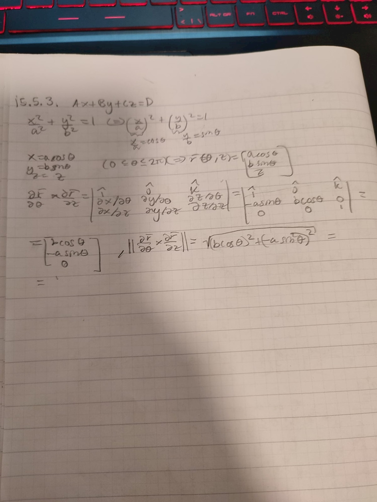 Under föreläsningarna har man beräknat areaelementet genom att parametrisera och sedan beräkna normalen av riktningsvektorn deriverad med avseende på dess parametrar (dr/d(theta) dy/d(theta) .