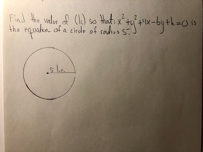 En cirkel med medelpunkt i och radie uppfyller ekvationen . Kan du göra något av det?