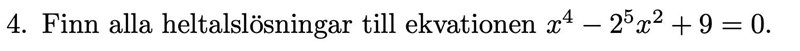 Med kvadratkomplettering kan uttrycket x4-2·24x2+32x^4-2 \cdot 2^4 x^2 + 3^2 skrivas