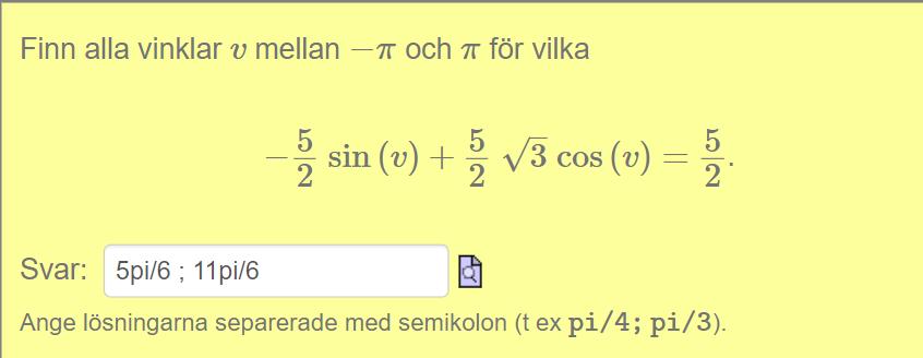 Finn alla vinklar v mellan −π och π för vilka, stämmer svaret?
