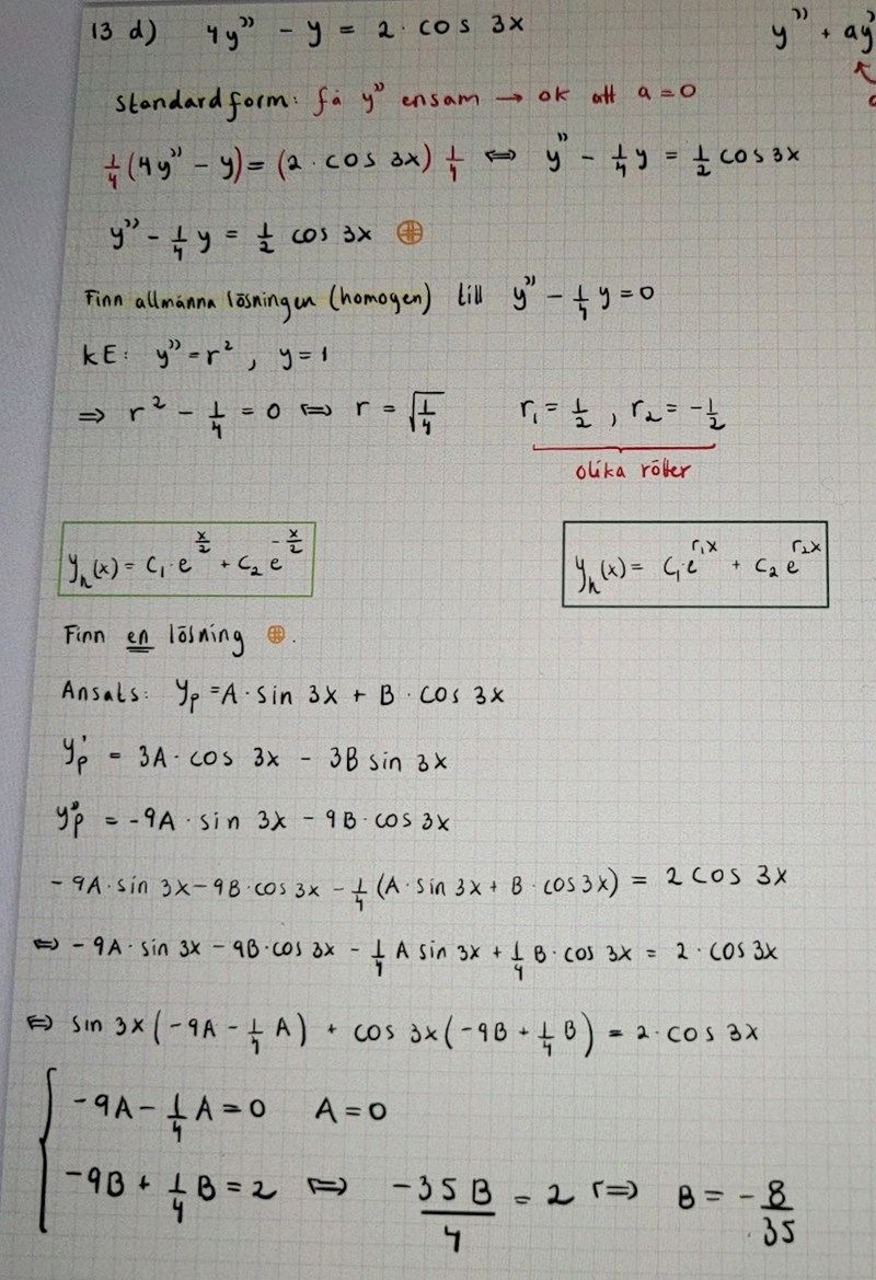 När du sätter in partikulärlösningen i diff.ekv har du först dividerat den med 4,vilket du förstås kan göra