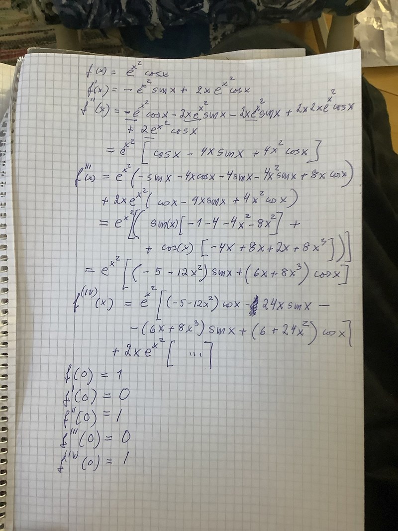 Så jag landade i att f, f’’ och fIV var = 1 för x = 0.