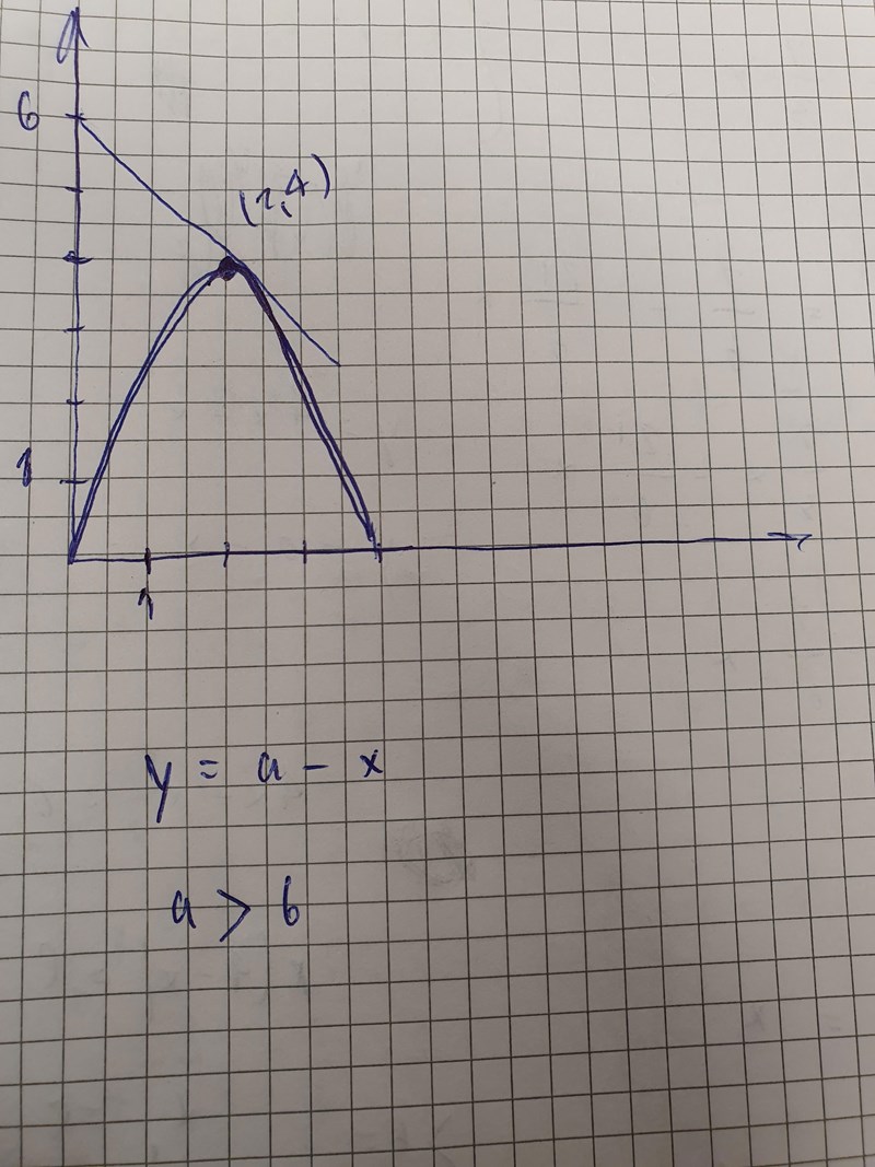 Alltså: y < a - x —> 4 < a - 2 —> a > 6