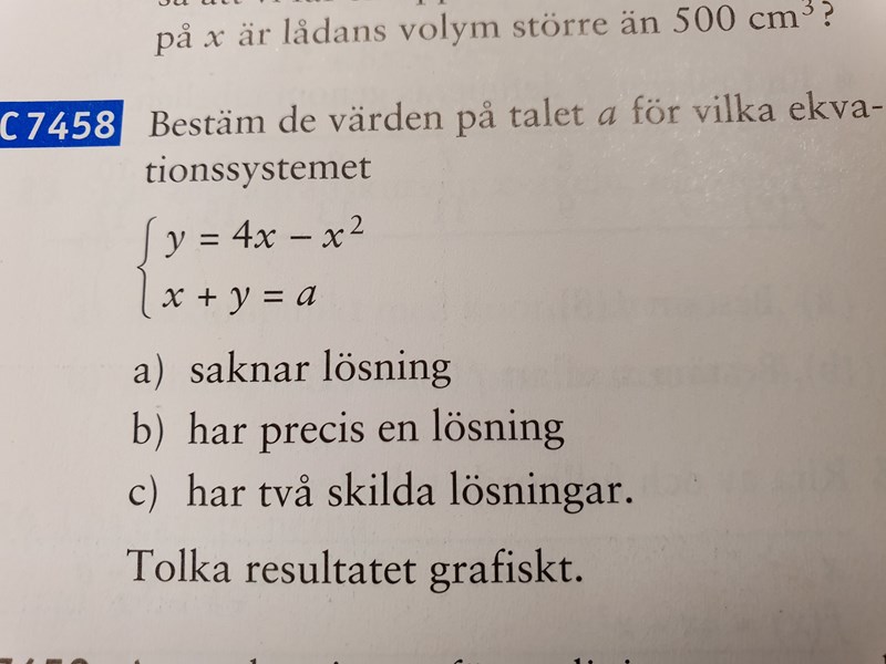 Den ena ekvationen är ju funktionen för en andragradsekvation. Hur ska jag då finna a?