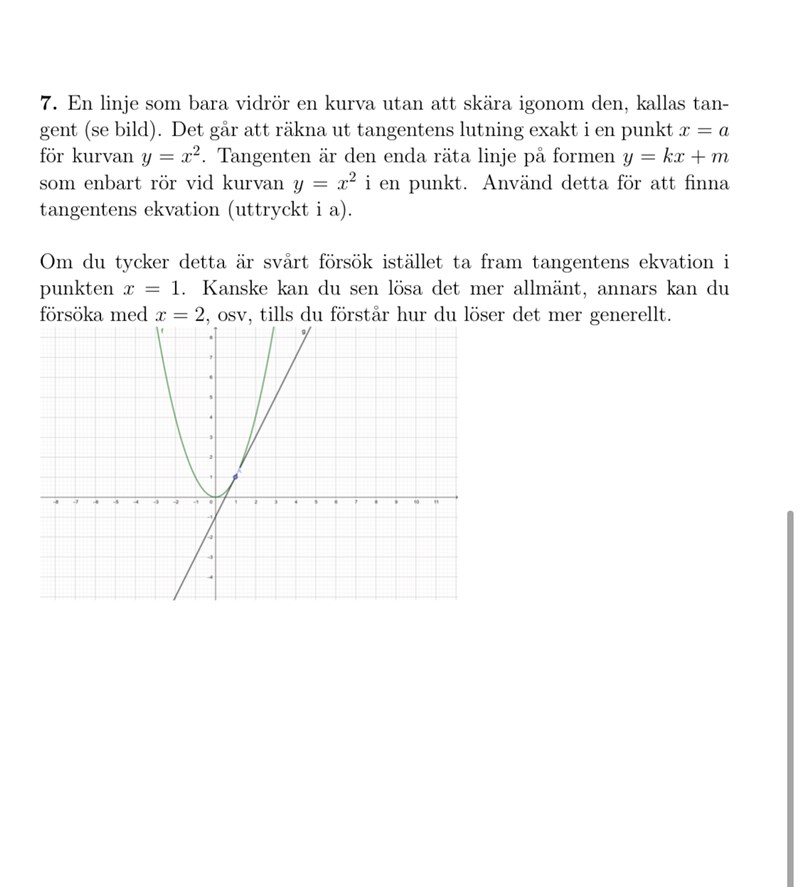 och att punkten blir (a,a^2) men hur ska jag lösa den för ett allmänt sätt