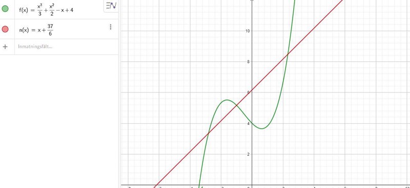 Hur gör jag sen? Ska jag undersöka antalet skärningspunkter mellan normalen och kurvan f(x)?