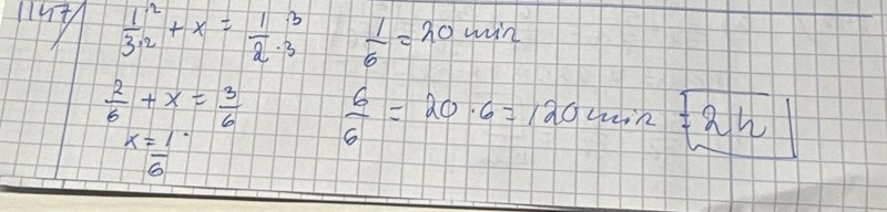 Jaa, jag tror det var den uträkningen som egentligen för ätandes av frågan och inte det jag gjorde. Och jag förstår varför, för att 1/3 av tiden är alltså tiden/3 alltså t/3. Adderar man 20 till ödet får man alltså hälften av tiden, dvs t/2