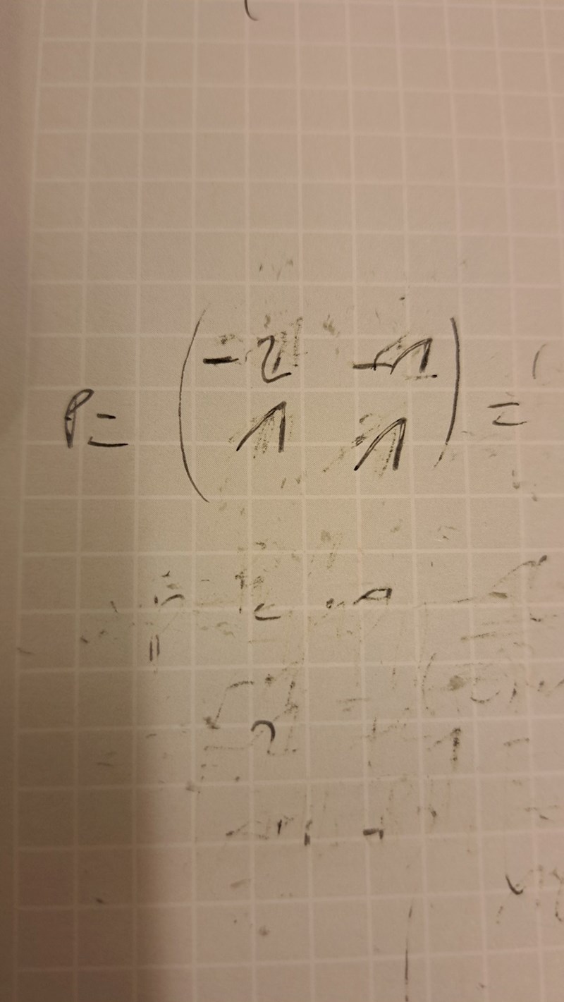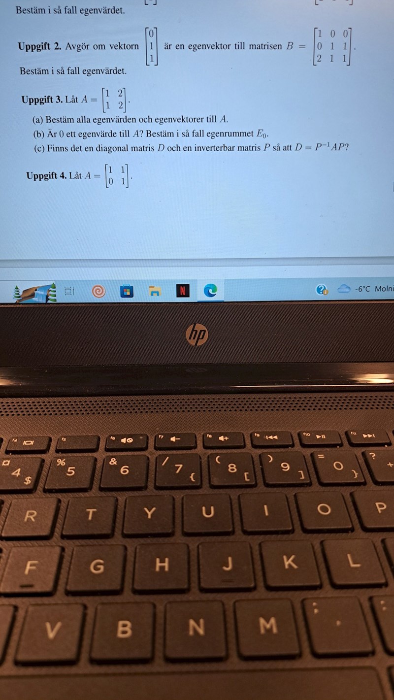 Nu gaussde jag och fick den där egenvektor . Den andra egenvektor har jag ingen koll på var det kommer ifrån..