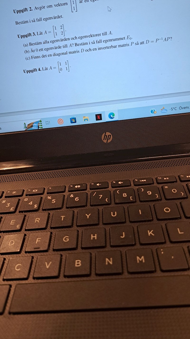 Micimacko skrev:Ville du bara veta d? Det är egenvärdena lagda på diagonalen. Trodde du skulle räkna ut p också.