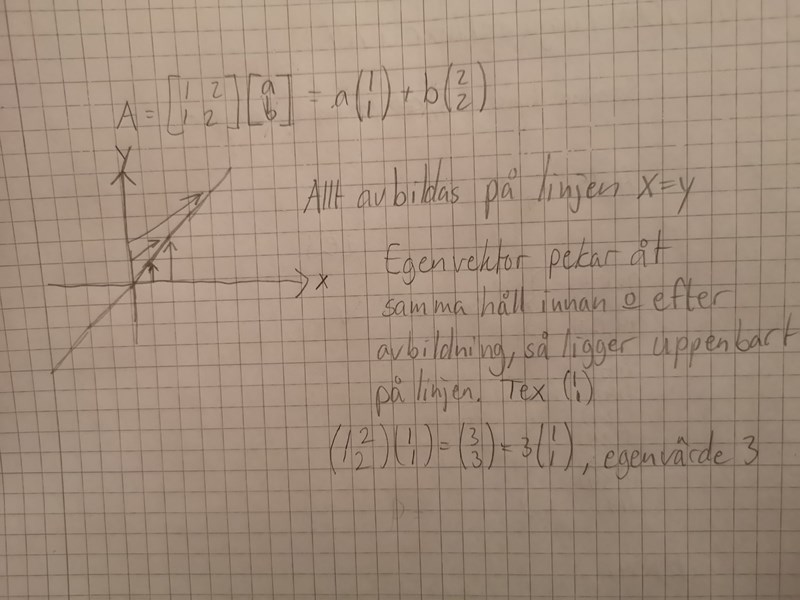 Men Av = t(1 1) , ingen egenvektor. Testa med dem jag räknade fram