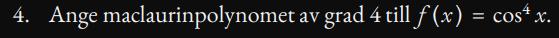 Jag började med att ta fram maclaurinpolynomet för cos x få fram de första 6 derivatorn.