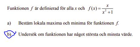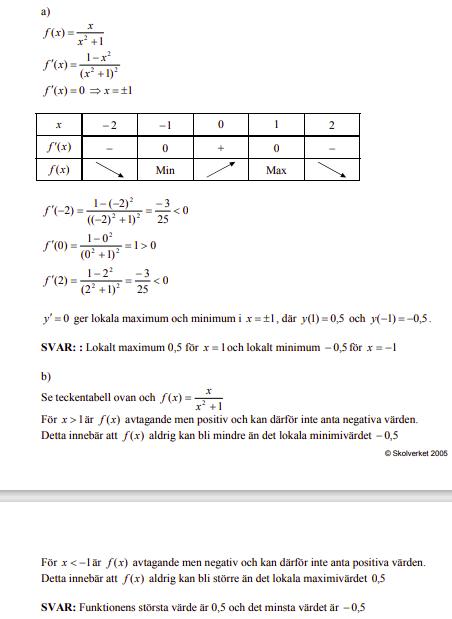 jag förstår inte deras lösning på uppgift b. Det finns ju en vågrät asymptot y = 0, vilket man kan inse genom gränsvärdet