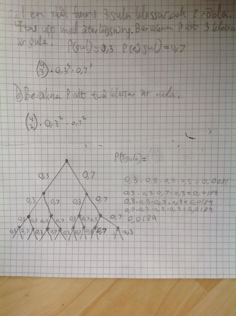 Nej, det skall vara med återläggning. Såg du att Albiki ändrade sitt inlägg? Binominalfördelning gärrer MED återlägggning.