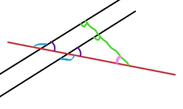 Anta att , i bilden har jag ritat in två vinklar som bildas mellan linjerna och den röda transversalen. Jag har markerat två vinklar som blir lika stora. Frågan är nu: finns det något bevis för att vinklarna faktiskt är lika stora? Jag har sökt runt lite men allt jag hittar är "det bara är så", vilket inte hjälper mig alls.