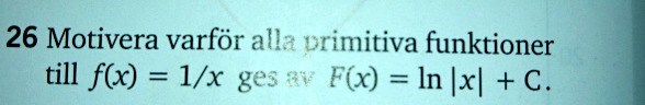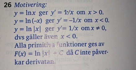 Är det funktioner på formen: F(x) = ln|kx| + C du tänker på som saknas?