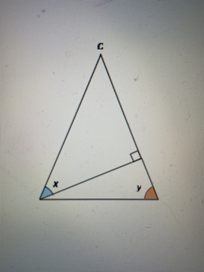 ”Triangeln ABC är likbent. Det finns ett samband mellan vinklarna X och Y. Finn detta samband”. Förstår inte hur jag ska hitta sambandet?