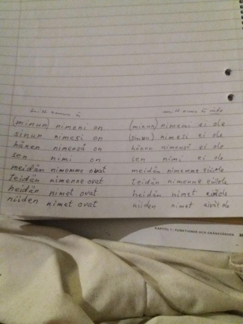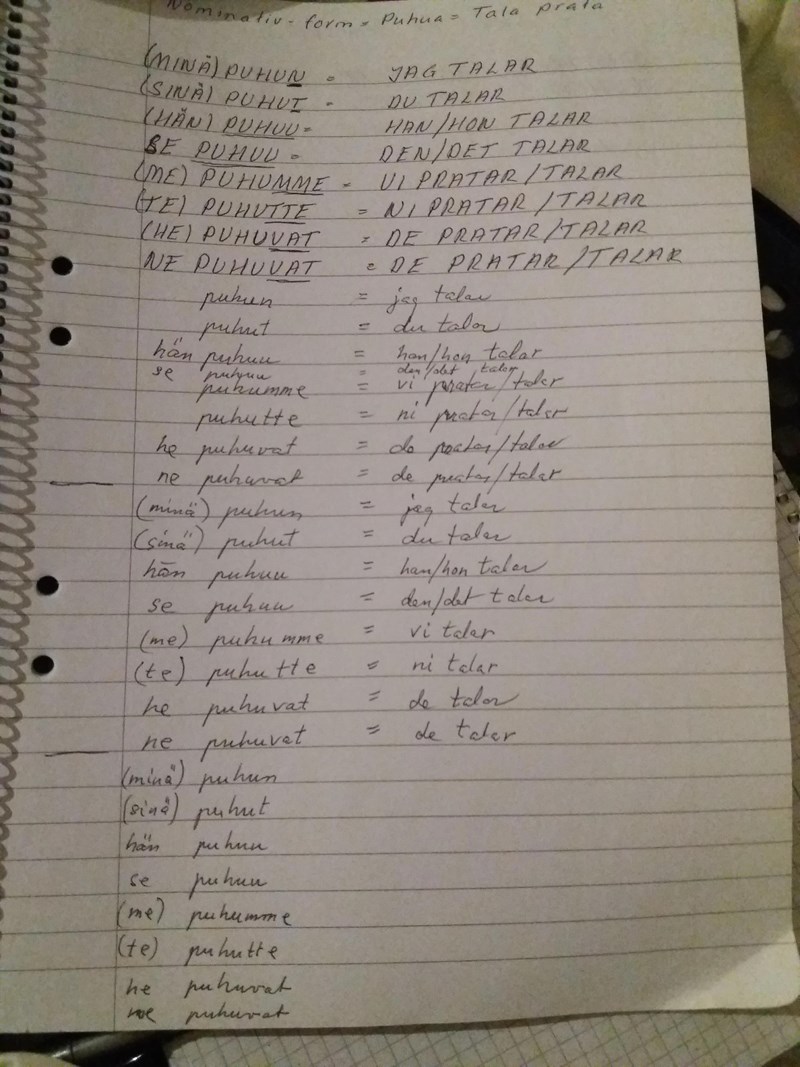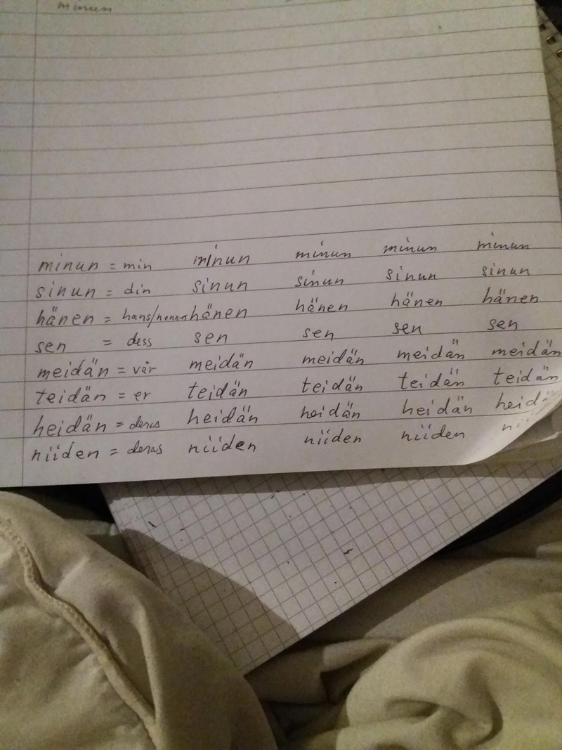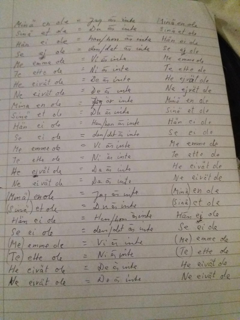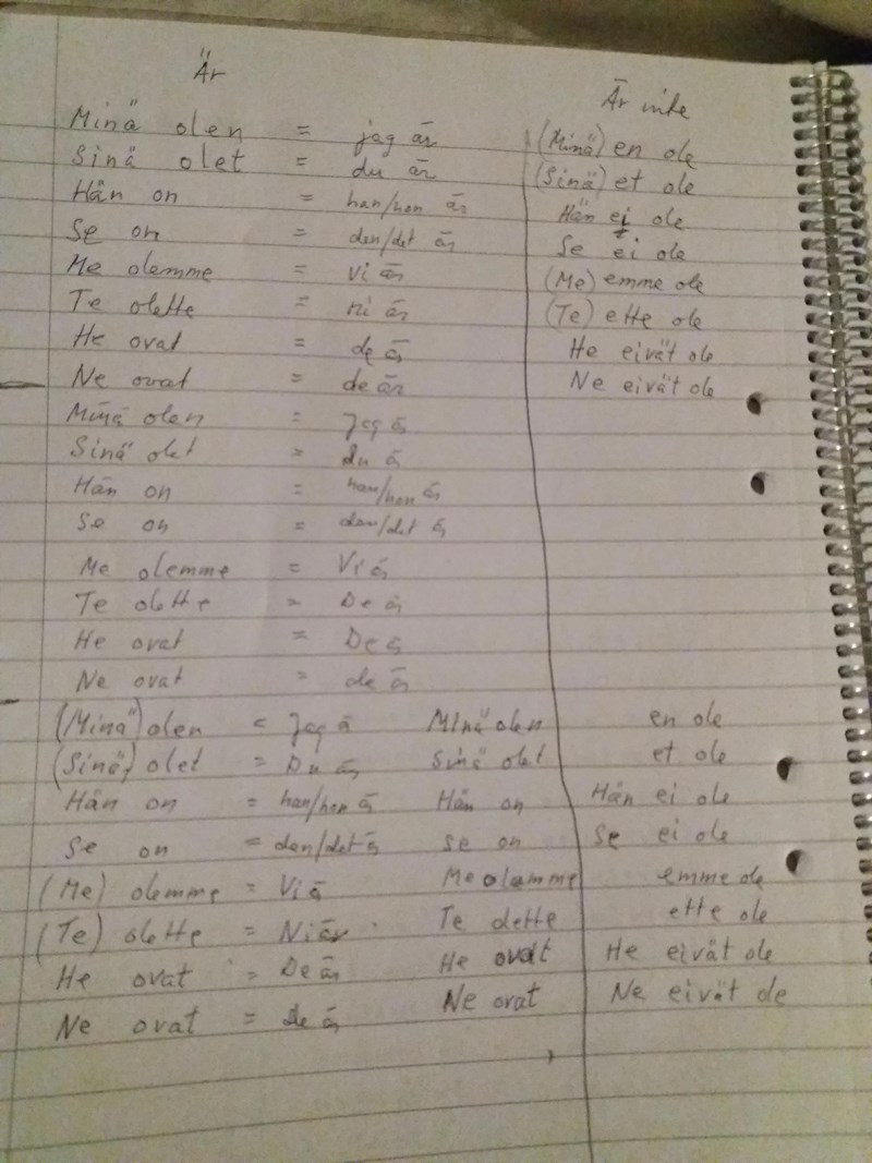 Min sambo var intresserad av lära finska. Tänkte bara visa, hurdan grammatik det är i finska språket. Det är inte lätt komma ihåg orden, när finska språket har riktigt långa ord.
