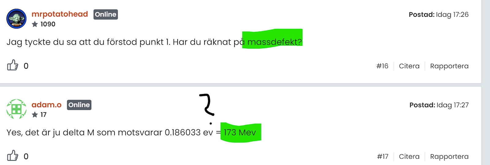 Jag tyckte du sa att du förstod punkt 1. Har du räknat på massdefekt?