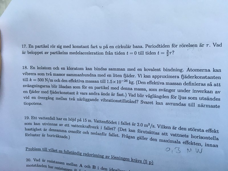 Hur gör ni på 18? Räcker det med att använda formeln omega^2=k/m? Sen stoppa in i hf, och sedan i hc/lambda? Udda uppgift.