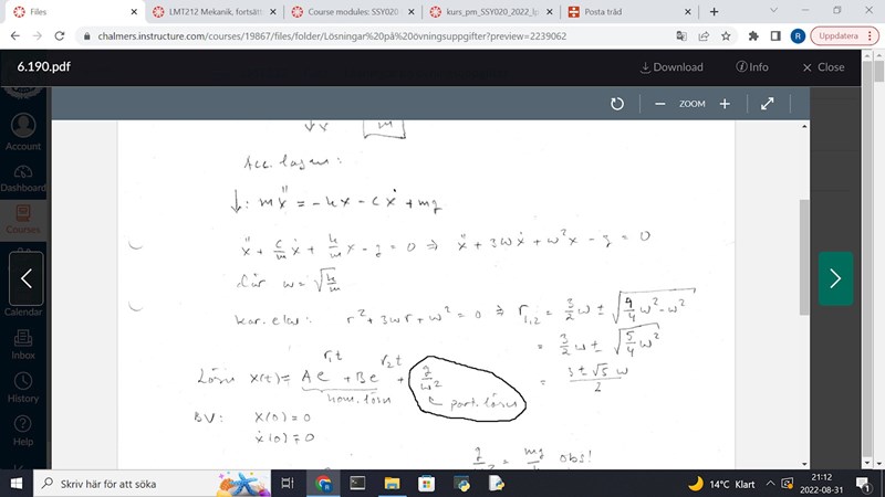 Det som jag inte riktigt förstår är hur man fick fram partikulärlösningen i det här fallet? Lösningsförslag: