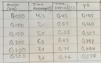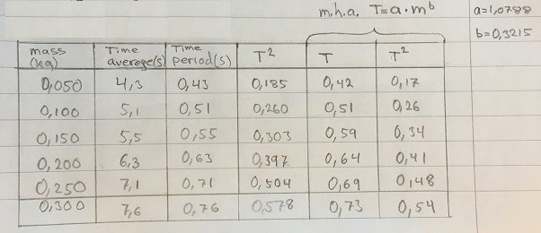 m=200g : T1= 6,01 s T2= 6,20 s T3= 6,10 s T4=6,70 s