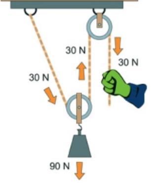 HEOB skrev:Spänningen i linan är lika med halva kraften från lasten, som du själv är inne på (inte som i senaste inlägget).