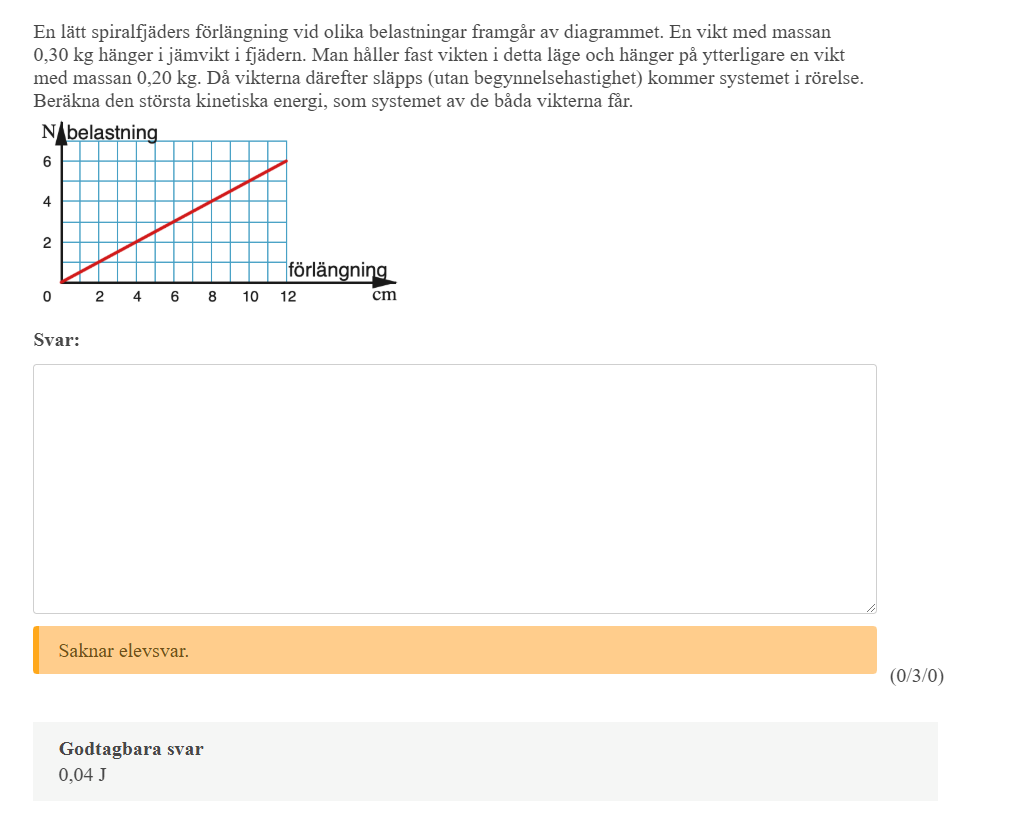 2) Du har gjort ett misstag när du beräknade k. (Enligt mina beräkningar k=50N/m)
