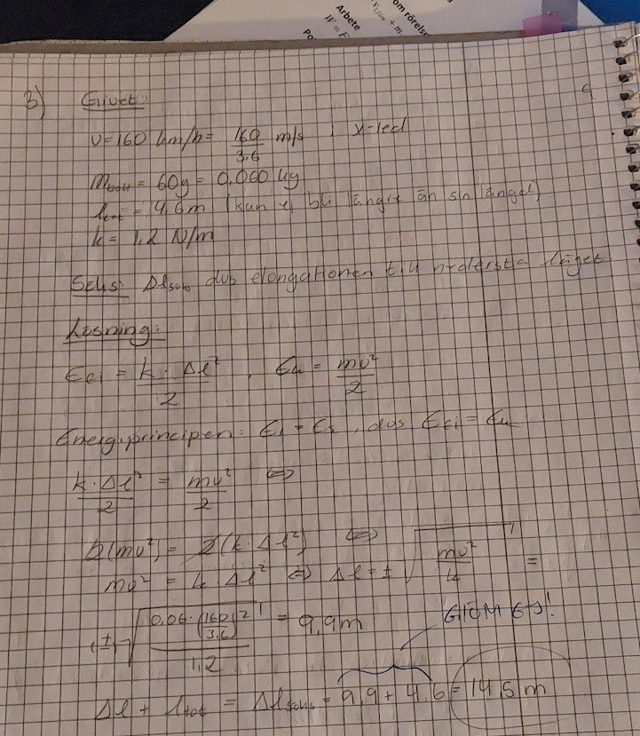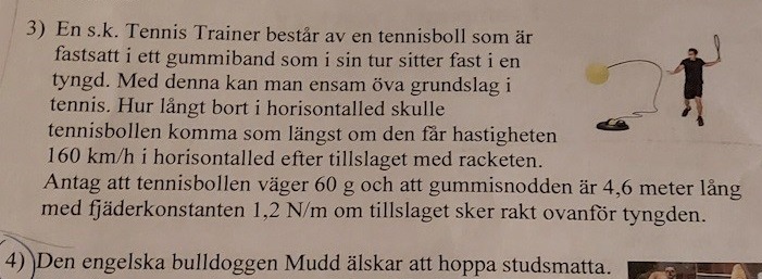 Hej! När jag tittade tillbaka på min gamla lösning till denna uppgift kunde jag inte minnas varför sträckan skulle adderas med trådens längd. När jag kastar bort bollen kommer ju snöret och bollen båda att röra sig sträckan som räknas ut innan addition med 4.6 sker? Tacksam för en förklaring.