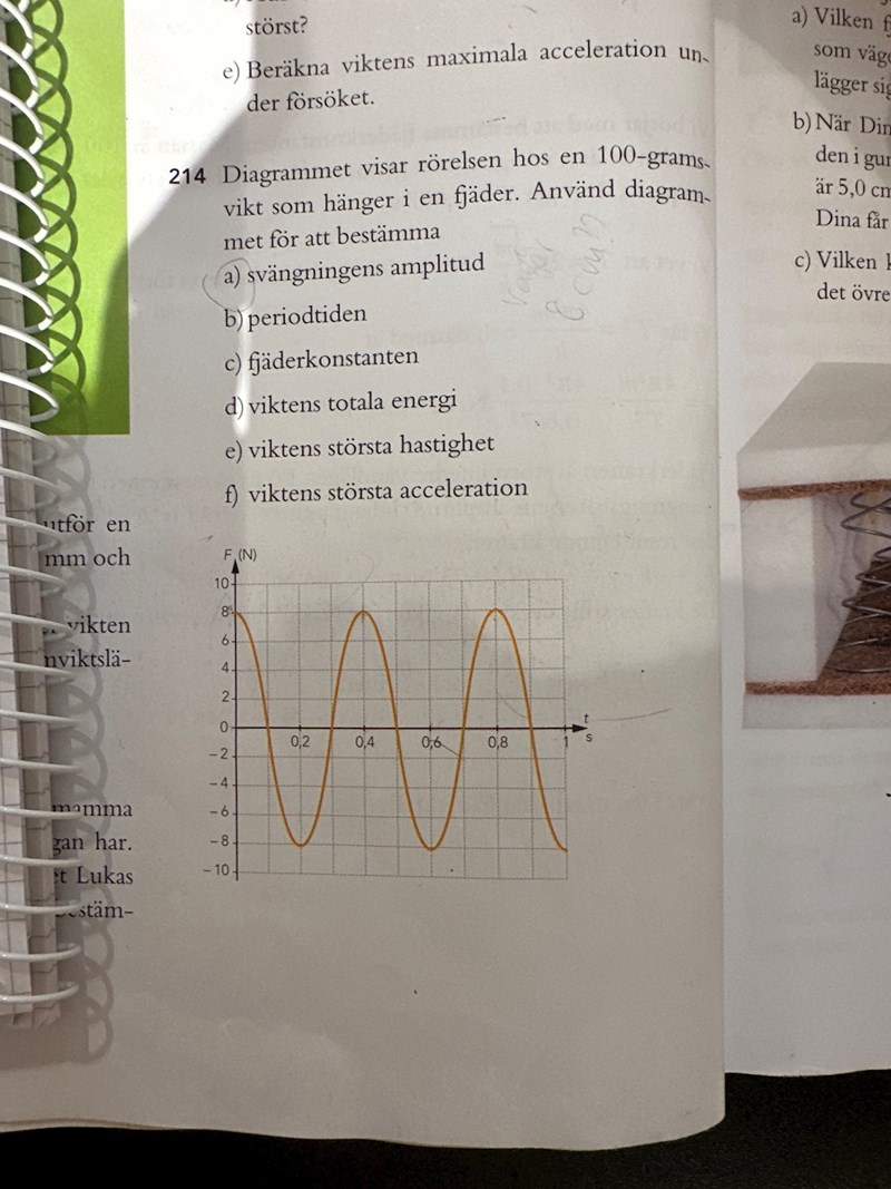 Jag tror du läser grafen fel. Det är kraft (Newton) på y-axeln. Hur kommer du fram till att amplituden är 8cm?